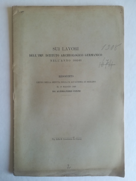 In 8 (cm 16,5 x 25,5), pp. 10. Brossura editoriale. Resoconto letto nella seduta della R. Accademia di Berlino il 18 maggio 1893.
